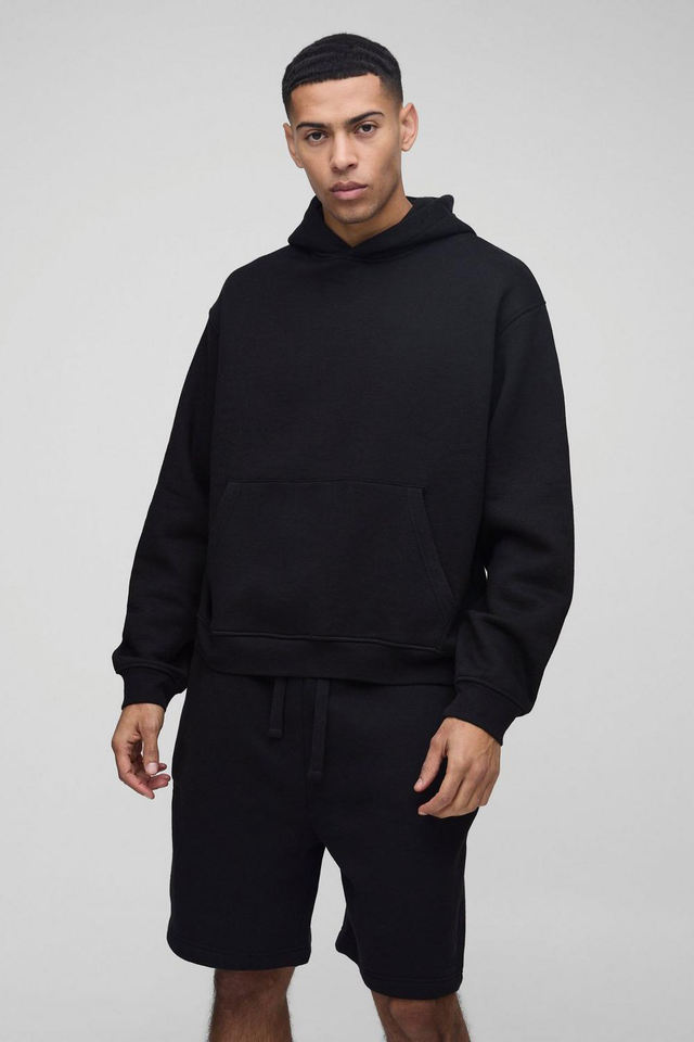 ชุดวอร์มกางเกงขาสั้นและเสื้อมีฮู้ดสำหรับผู้ชายชุดวอร์มสำหรับ2025ชุดเสื้อผ้าแนวสตรีทผ้าคอตตอน100% ออกแบบโลโก้ได้ตามต้องการ