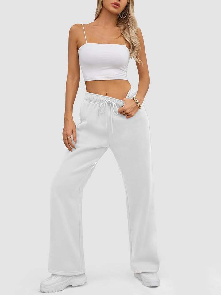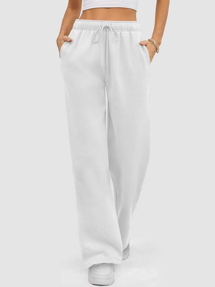 กางเกงวอร์มขาบานสำหรับผู้หญิงผ้าคอตตอนเนื้อนุ่มระบายอากาศได้ดีผ้าคอตตอน100% ขากว้างตรงราบสำหรับฤดูหนาว