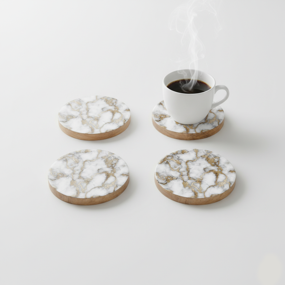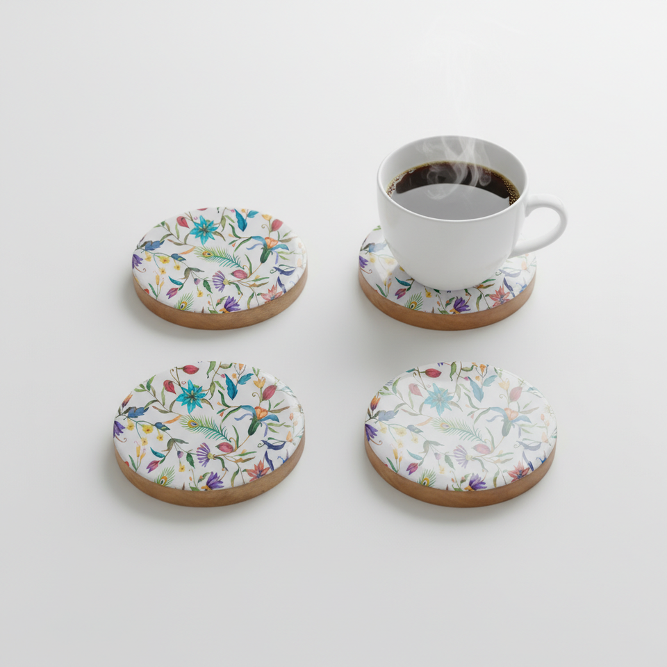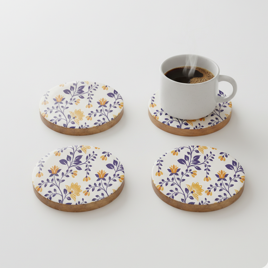แผ่นรองจานเคลือบลายพิมพ์แบบคลาสสิกขนาด 10 ซม. ขายส่งปี 2026 พร้อมที่รองแก้วไม้ฟรีสำหรับงานแต่งงานและงานปาร์ตี้