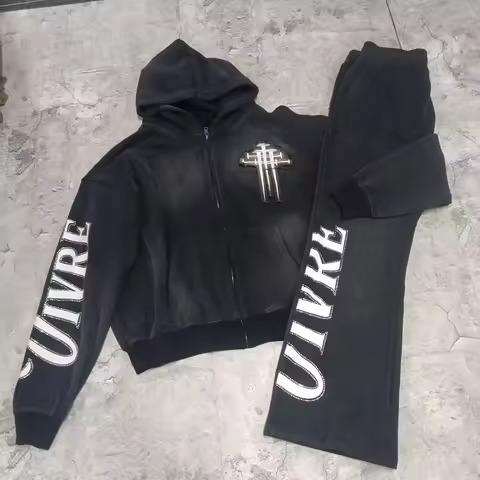 ชุดวอร์มซิปพรีเมียมคุณภาพสูงปี 2026 แบบขายส่ง พร้อมลายปัก апплика แบบฟอกสี สำหรับผู้ชาย