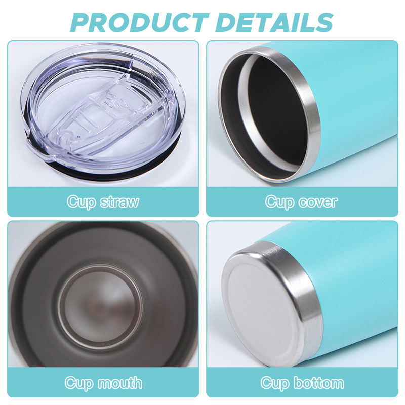 แก้วกาแฟแบบพกพาเคลือบผงขนาด 20 ออนซ์ ขายส่ง แก้วน้ำสแตนเลสสุญญากาศแบบสองชั้น แก้วน้ำสำหรับรถยนต์พร้อมฝาปิด