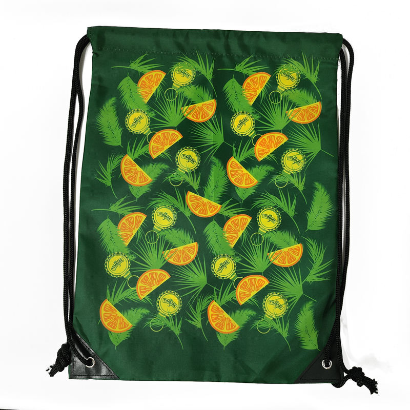 กระเป๋าเป้210D กันน้ำโพลีเอสเตอร์เป็นมิตรกับสิ่งแวดล้อมรีไซเคิลได้ปรับแต่งโลโก้ได้กระเป๋าเล่นกีฬาสำหรับเป็นของขวัญประจำวัน