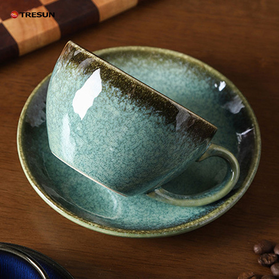 แก้วเซรามิกขนาด 220 มล. 320 มล. พร้อมจานรอง ลายกราฟิก จับถนัดมือ สำหรับดื่มชาเวลาบ่าย เหมาะสำหรับแจกในซาอุดีอาระเบีย ขายส่ง
