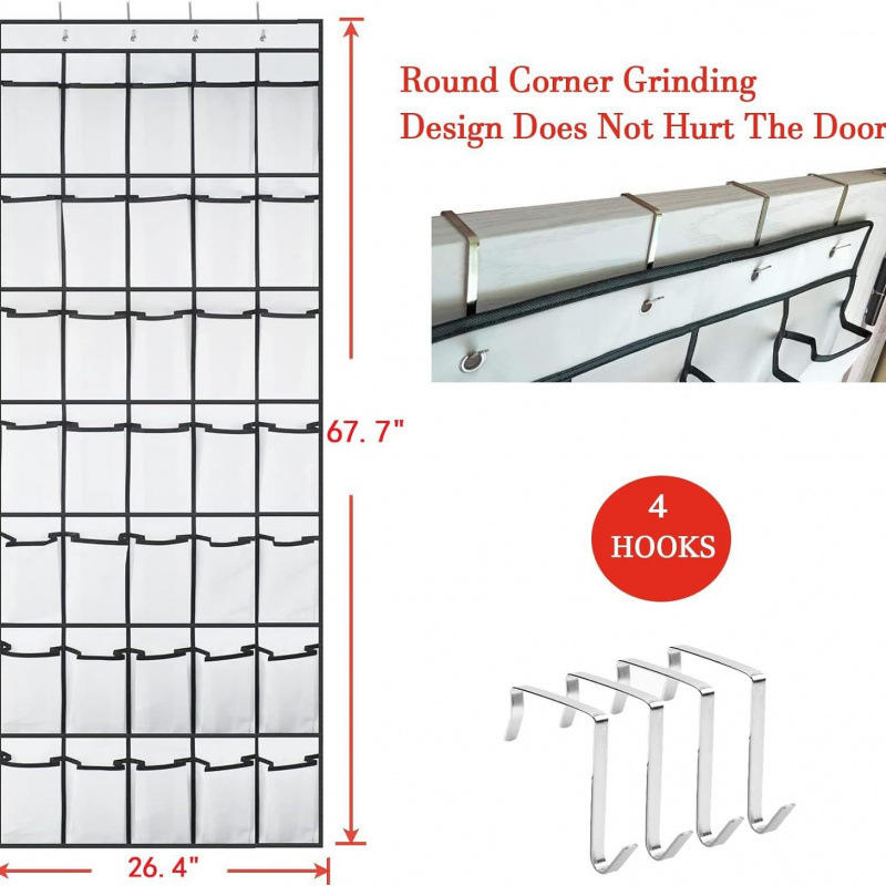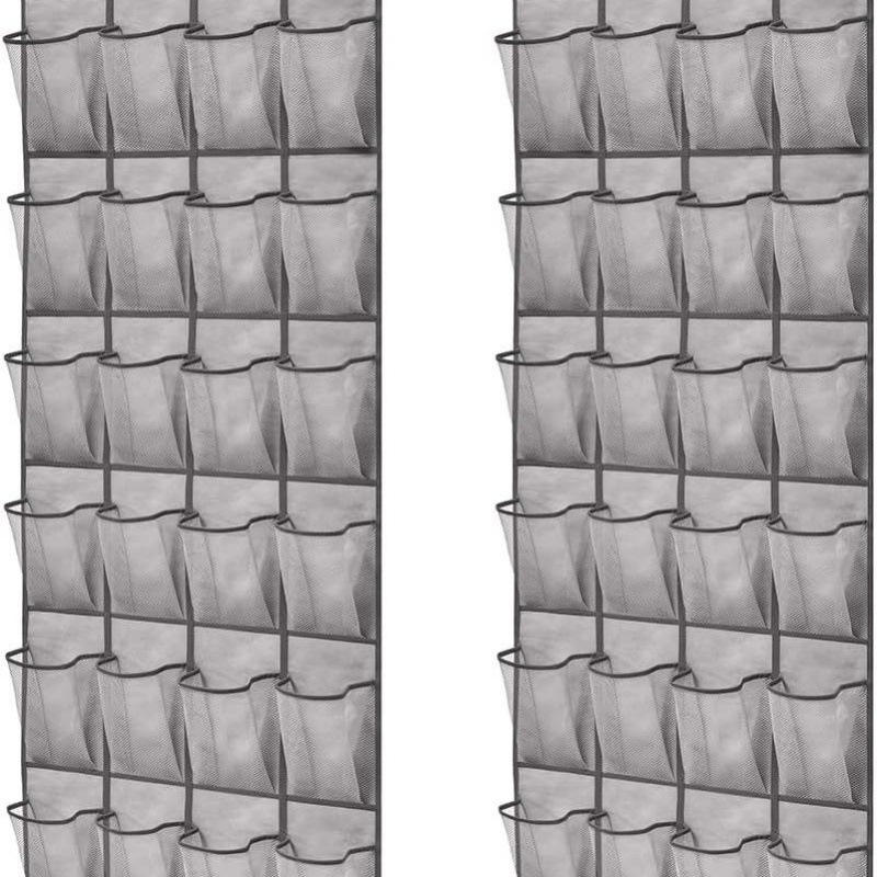ชั้นวางของติดผนังแบบ 24 ช่องสำหรับจัดเก็บรองเท้าและของใช้จิปาถะ กระเป๋าผ้าแขวนเก็บของแบบตาข่าย แขวนประตูได้