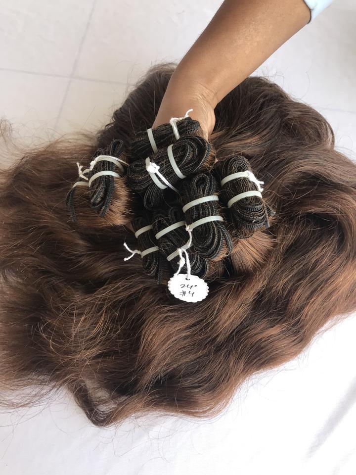 ผมต่อแบบเวอร์จิ้นแท้จากอินเดียและกัมพูชา ขนาด 24 นิ้ว เกรด 12A คุณภาพสูงสุด แบบเย็บสองชั้น สีต่างๆ ขายส่ง # 4 วอยฟ์เวฟ