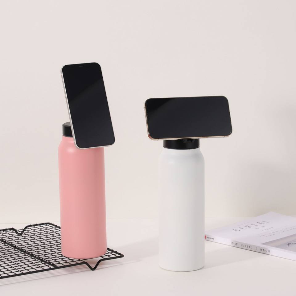 ขวดน้ำฉนวนสุญญากาศผนังสองชั้น24ออนซ์พร้อมฝาแม่เหล็กยึดโทรศัพท์มือถือ