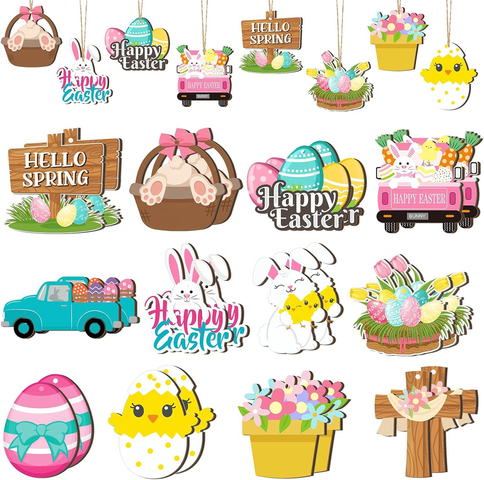 24ชิ้นเครื่องประดับที่ทำจากไม้อีสเตอร์เครื่องประดับฤดูใบไม้ผลิแครอทกระต่ายไข่ของตกแต่งแบบแขวน