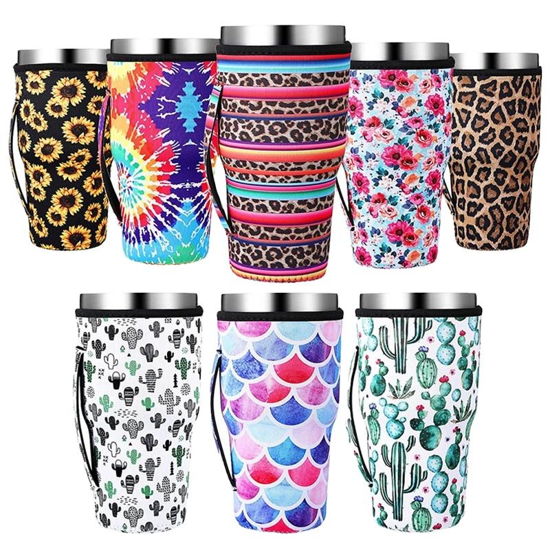 แก้วน้ำเก็บอุณหภูมิทำจากนีโอพรีนขนาด24ออนซ์30ออนซ์พร้อมที่จับแก้วกาแฟแบบนำกลับมาใช้ใหม่ได้คุณภาพสูงรูปแบบกล่องเก็บความเย็น