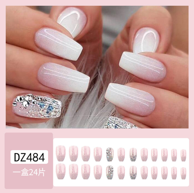 แผ่นติดเล็บรูปผีเสื้อสีเงินลายระเบิดสวมใส่ได้24ชิ้นสำหรับการทาเล็บสไตล์ฝรั่งเศส