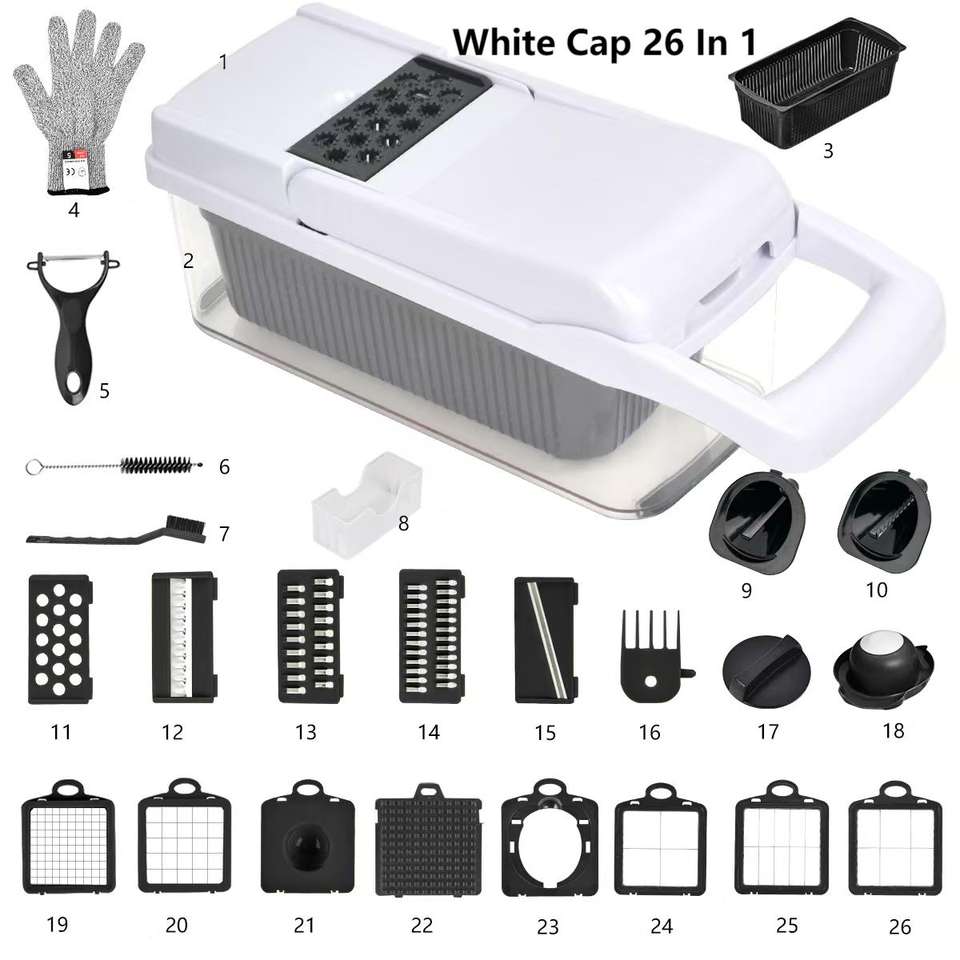 เครื่องตัดผักอเนกประสงค์ 26 in 1 ชุดเครื่องขูดและสับผักสำหรับครัว