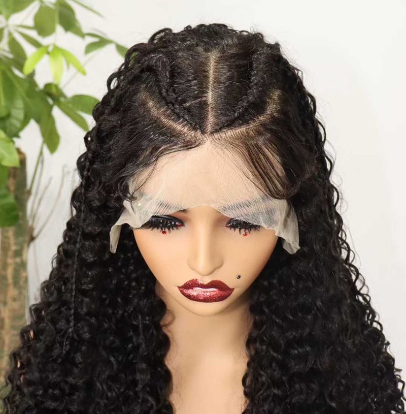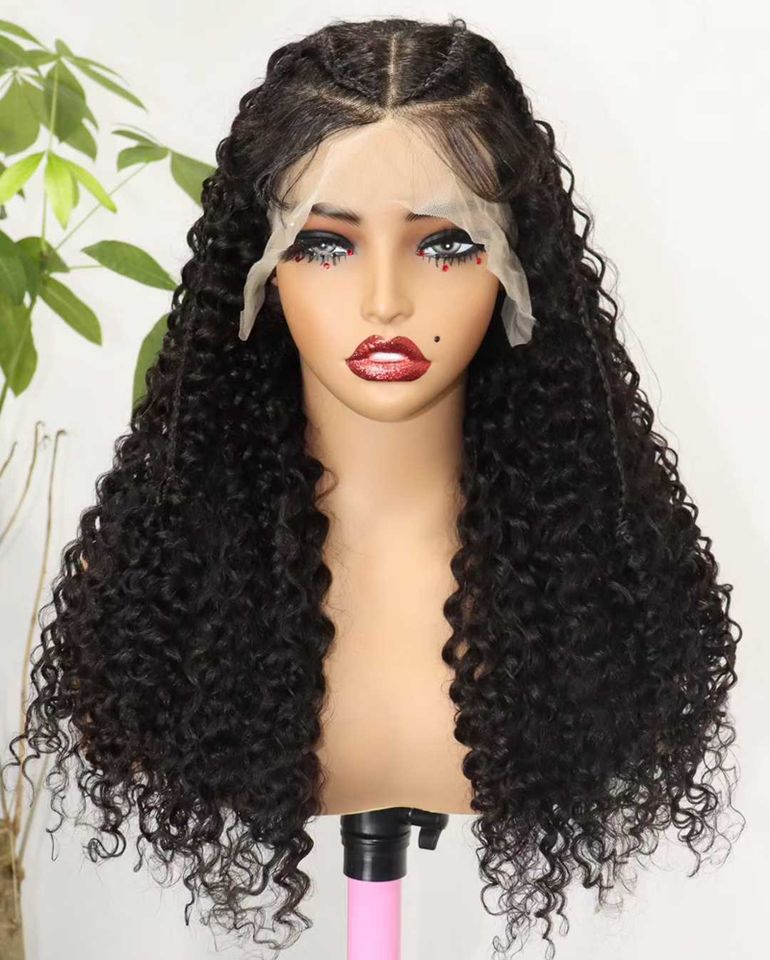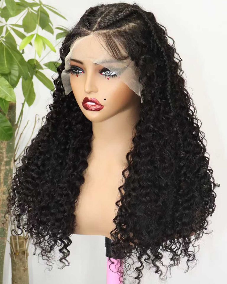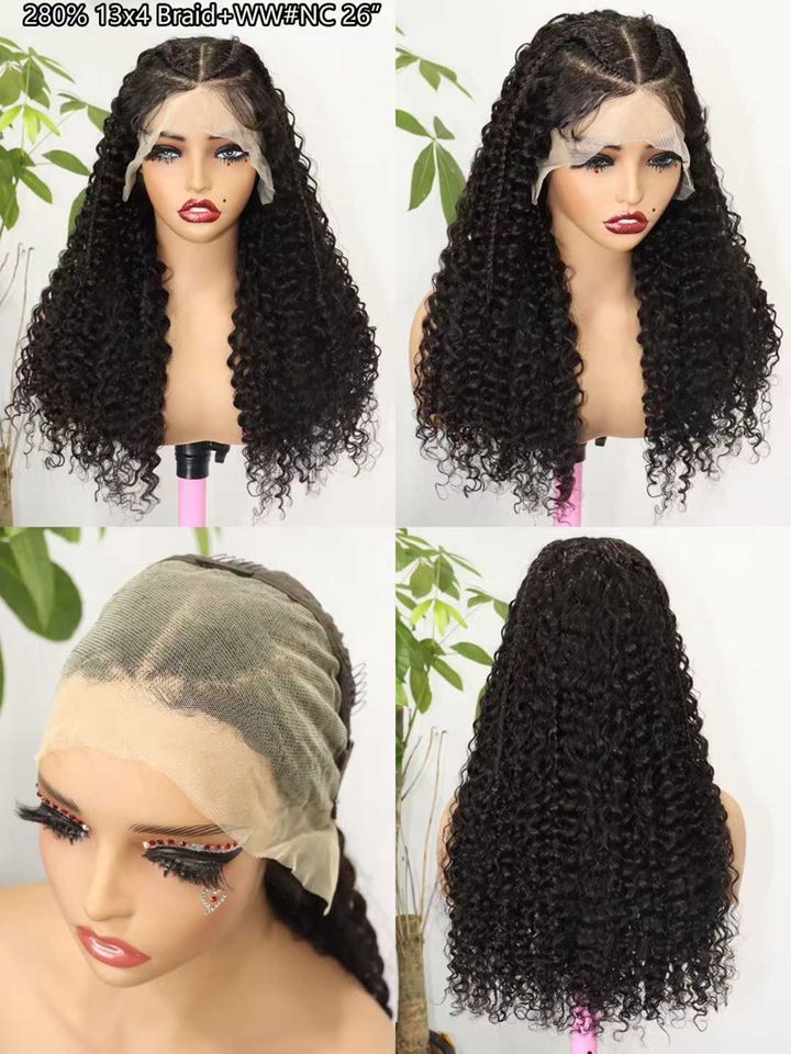 Wholesale 280 Density Braided Wig 13x4 Full Lace Frontal Water Wave Wet and Wavy Brazilian Human Hair Wigs Bulk Hair for Braids
