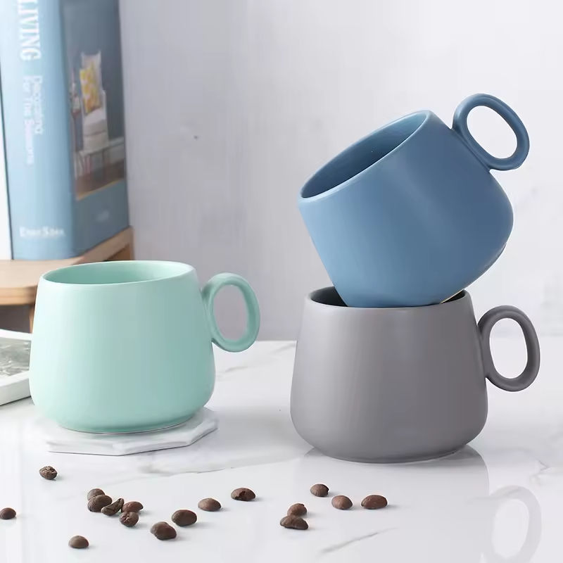ถ้วยกาแฟเซรามิกเคลือบเงาสีเขียวชมพูฟ้าเทาขนาด280มล. ถ้วยใส่นมสไตล์นอร์ดิกใช้ในเครื่องล้างจานได้ง่ายปลอดภัยสำหรับไมโครเวฟ
