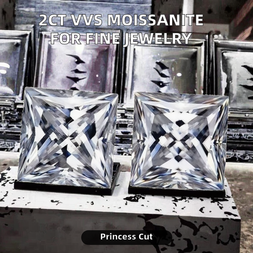 โมอิสซาไนต์เจียระไนทรงเจ้าหญิง 2 กะรัต แบบหลวม คุณภาพ VVS สีขาว GH สำหรับทำเครื่องประดับชั้นดี แหวนหมั้น หรูหรา ขายส่ง
