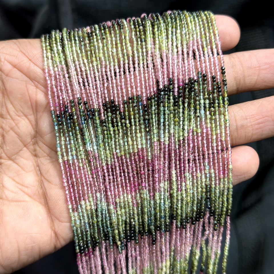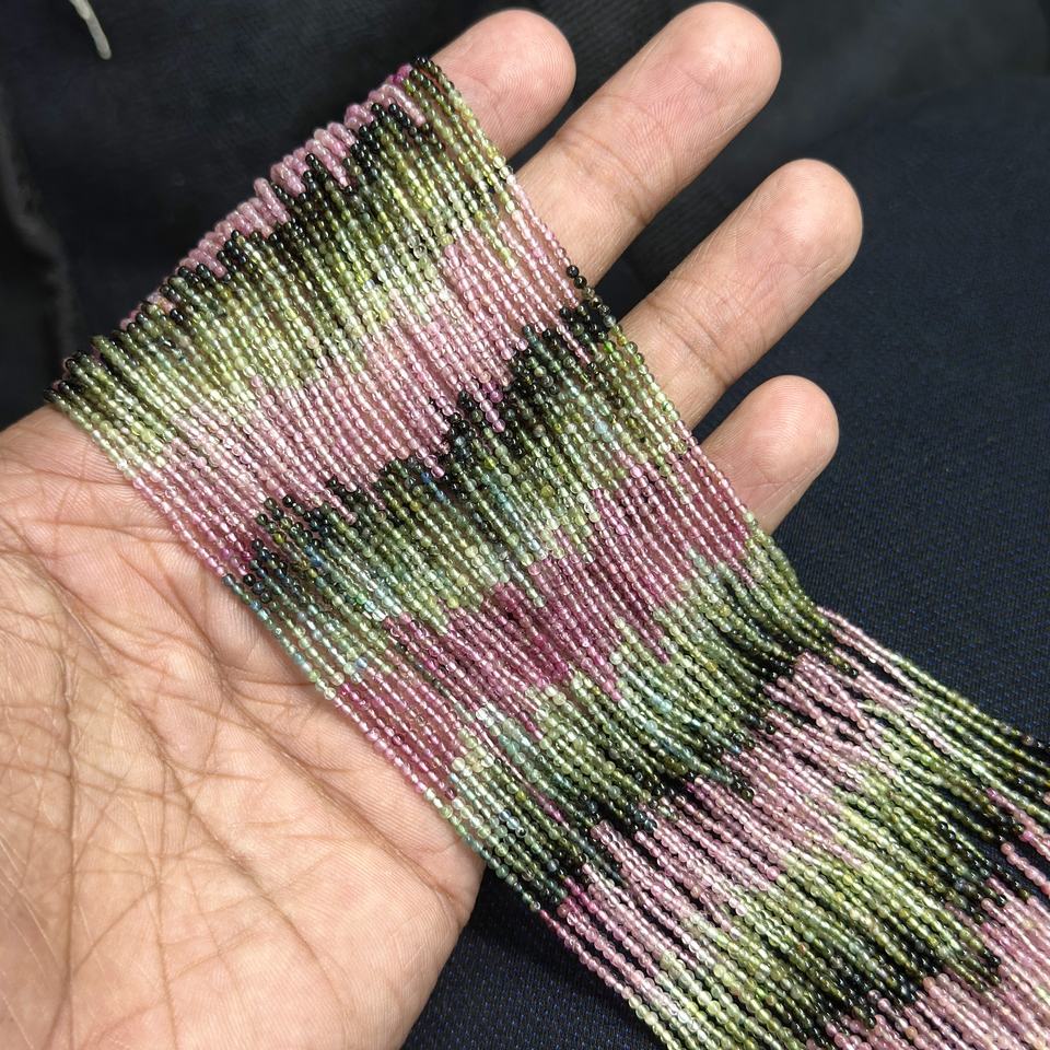 ลูกปัดพลอยทัวร์มาลีน2มม. หลายเส้นลูกปัดทัวร์มาลีนธรรมชาติสำหรับทำเครื่องประดับขายส่งจำนวนมาก