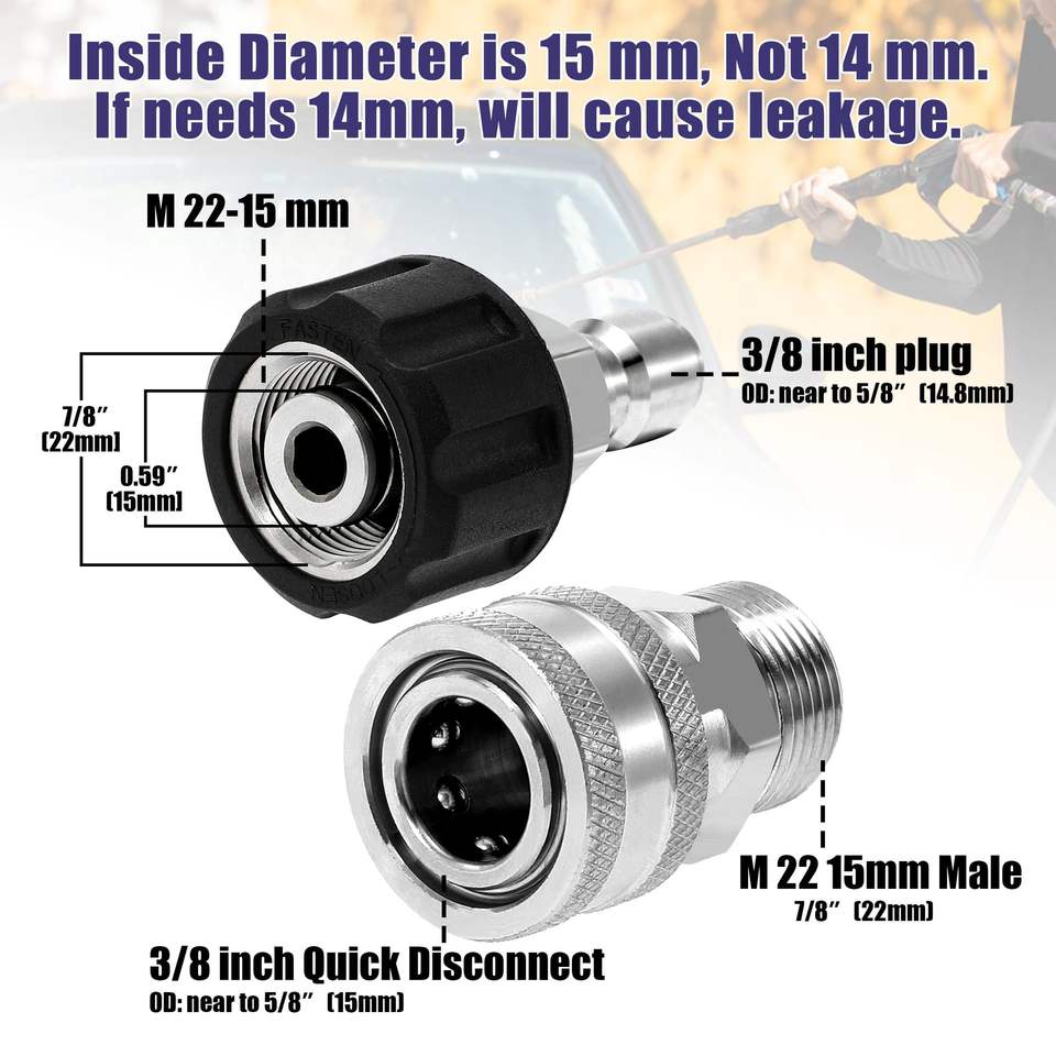 หัวต่อแบบเสียบเร็ว 3/8 นิ้ว สำหรับเครื่องฉีดน้ำแรงดันสูง อุปกรณ์เชื่อมต่อท่อ ปืนฉีดน้ำ สำหรับทำความสะอาดรถยนต์ ขายส่ง