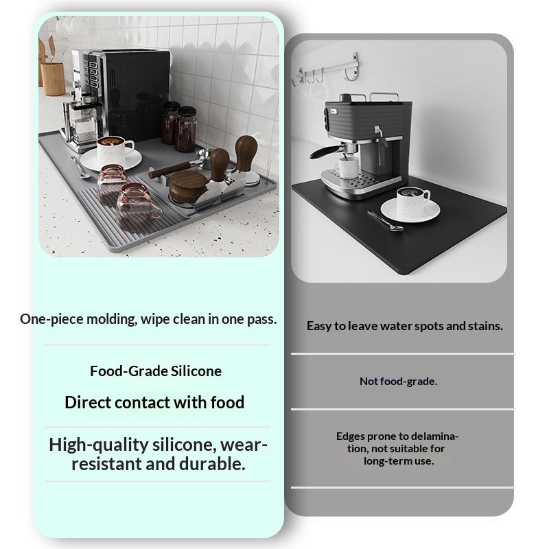 แผ่นรองกาแฟซิลิโคน 3-in-1 แบบขายส่ง ป้องกันการลื่นไถลอเนกประสงค์ สำหรับวางบนเคาน์เตอร์ ช่วยลดการกระจายของเศษกาแฟ ตัวช่วยสำคัญในการจัดเตรียมสถานที่