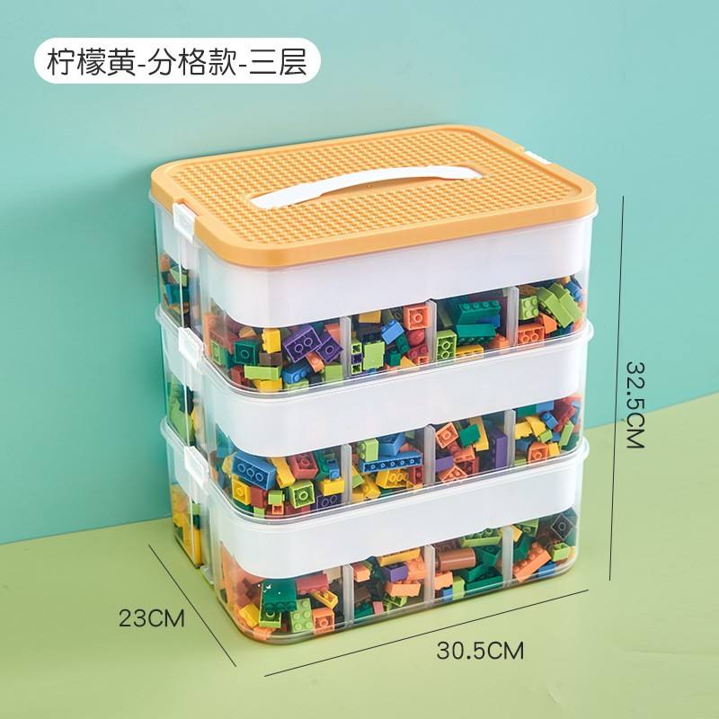 Wholesale 3 Layers Foldable Toy Box Organizer with Lid Stackable Plastic Toddler Storage Bins Building Block