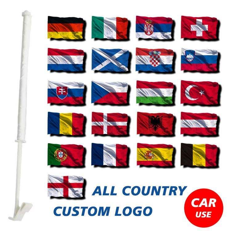ขายส่งธงรถยนต์แบบถัก 3 ชั้น ทำจากโพลีเอสเตอร์ รับพิมพ์ลายตามสั่ง พร้อมเสาธง
