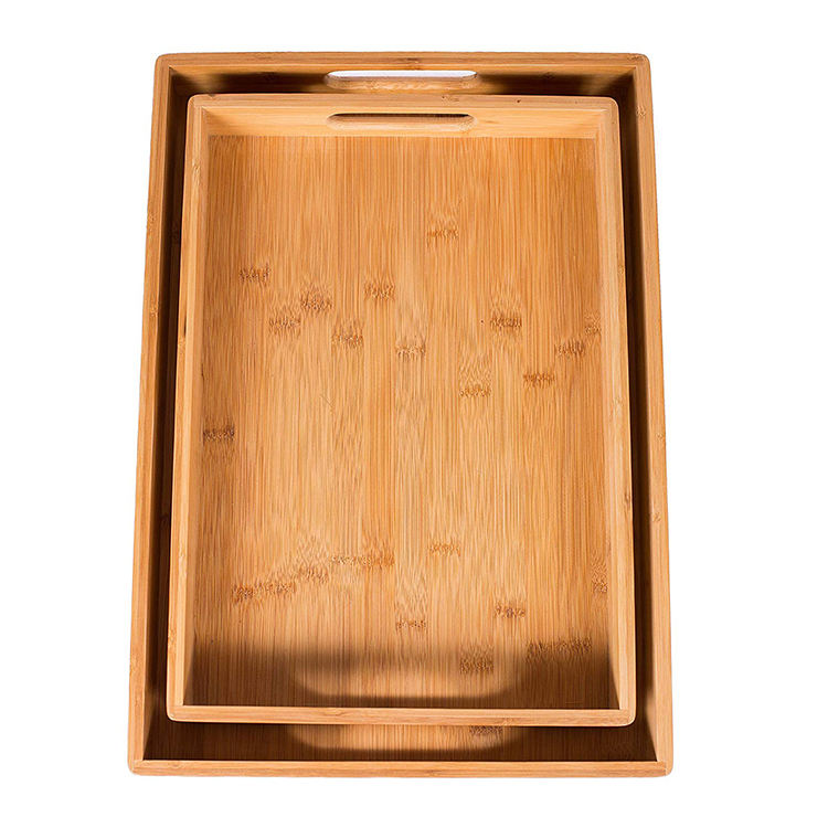 ถาดเสิร์ฟอาหารไม้ไผ่รูปสี่เหลี่ยมผืนผ้าขนาดใหญ่แบบมีหูจับ เป็นมิตรกับสิ่งแวดล้อม จำนวน 3 ชิ้น ขายส่ง