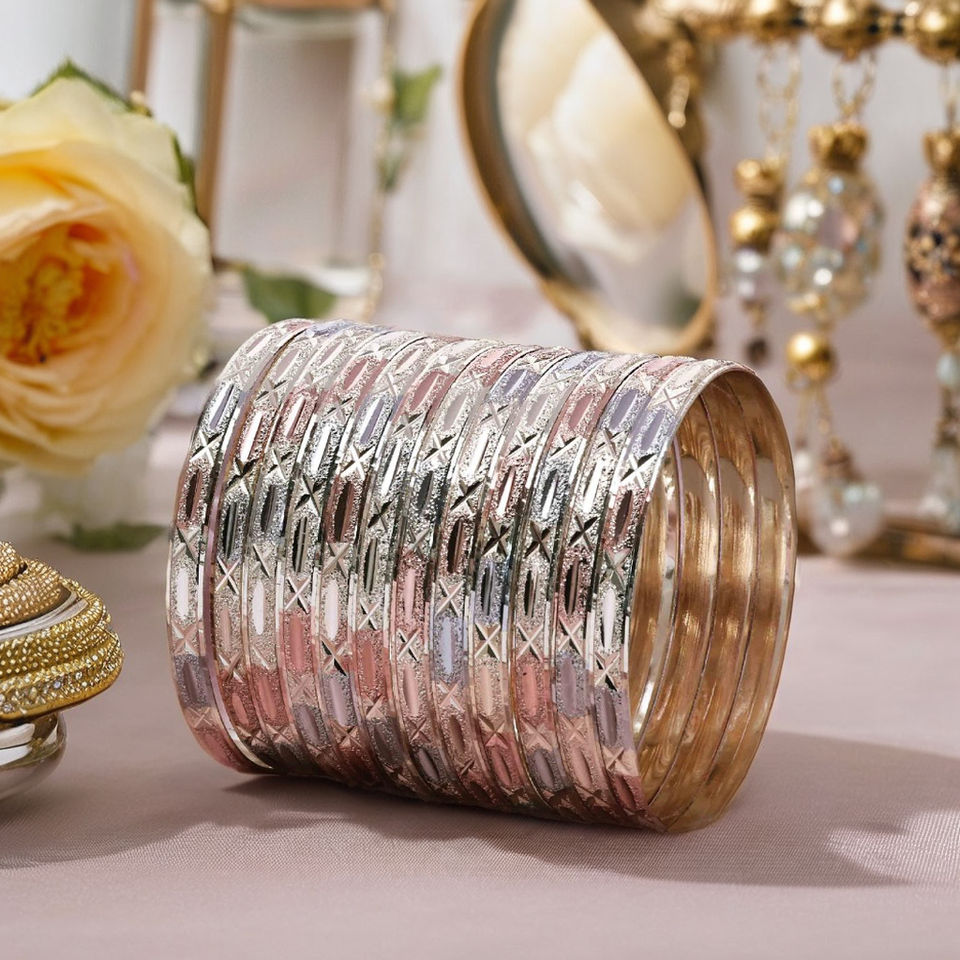 ขายส่งกำไล3โทนสีทองแบบสั่งทำกำไลพื้นผิวชุบทอง3โทนกำไลแฟชั่นชุดกำไลข้อมือทองเหลืองสามสี