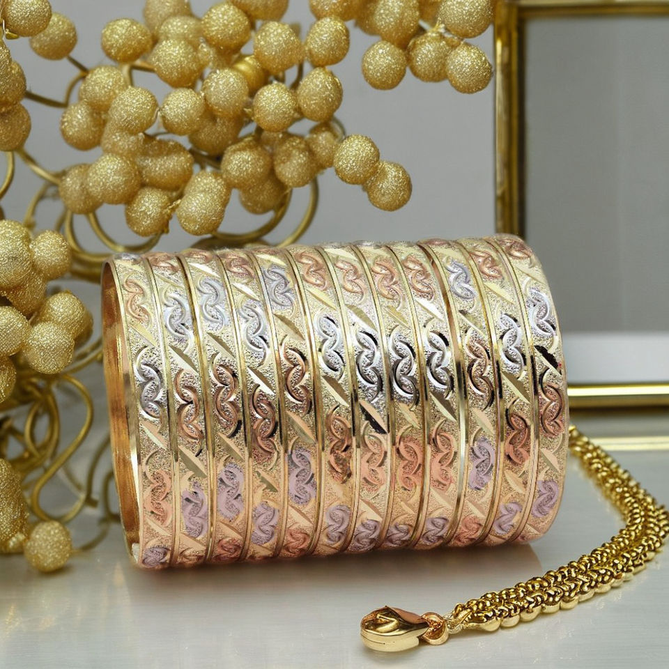 กำไลข้อมือชุบทอง 3 สี ขายส่ง, กำไลข้อมือทองหลากสี, เครื่องประดับแฟชั่น, ชุดกำไลข้อมือ 3 สี, ชุดกำไลข้อมือสามสี