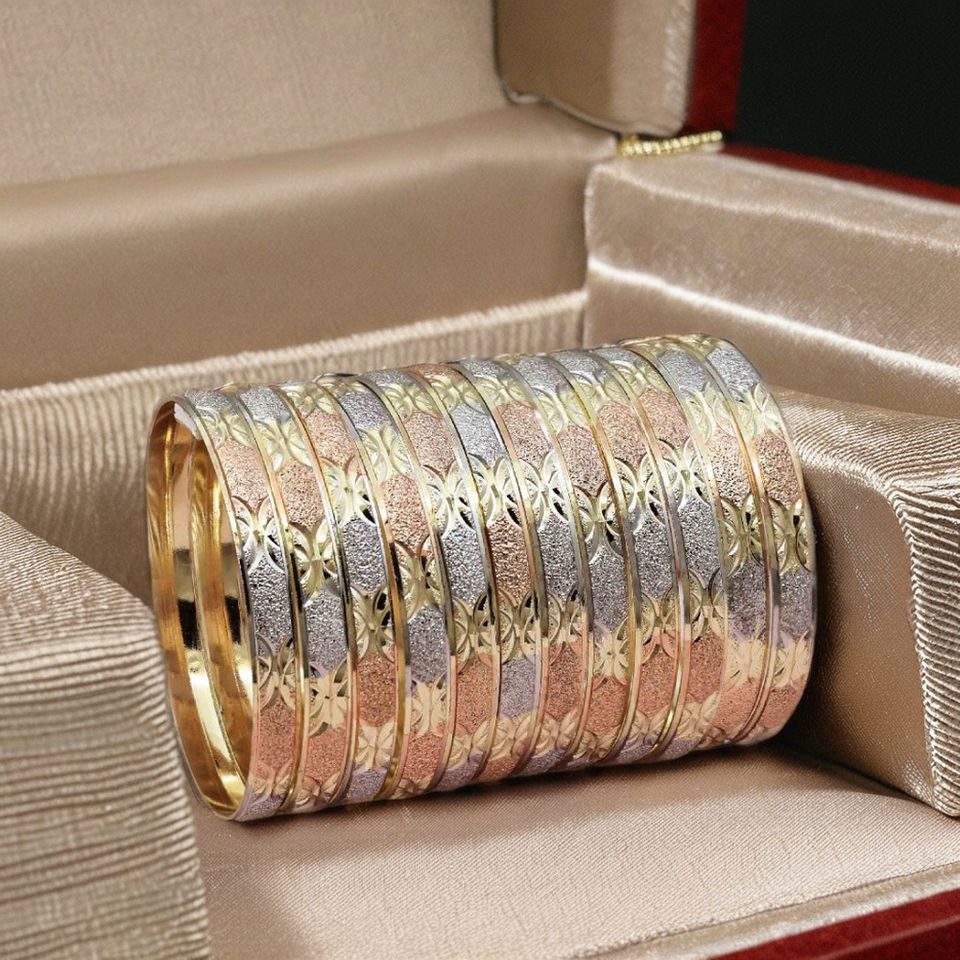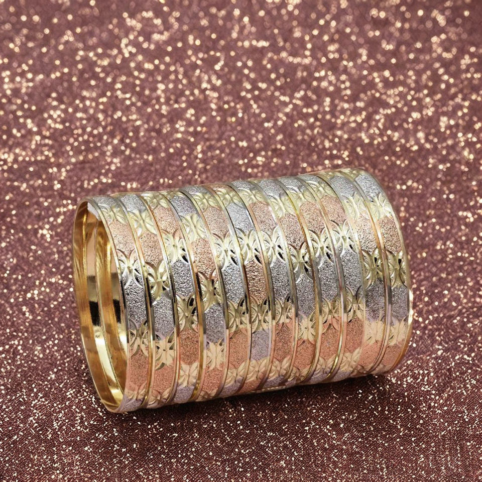 ขายส่งชุดกำไลชุบทอง3โทนเครื่องประดับกำไลแฟชั่นชุดกำไลทองเหลืองสามสีกำไลข้อมือสีทองหลายโทน