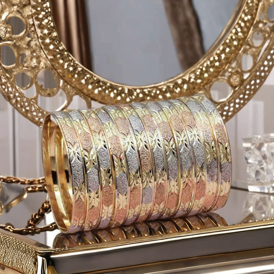 ชุดกำไลข้อมือชุบทอง 3 สี ขายส่ง, กำไลแฟชั่น, ชุดกำไลทองเหลืองสามสี, กำไลทองหลากสี