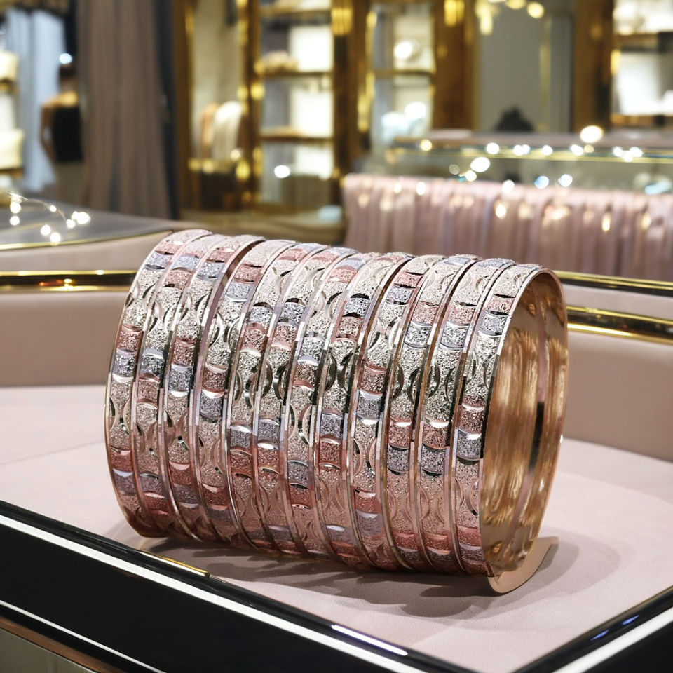 กำไลสีทอง3สีชุดกำไลข้อมือสุดหรูหลากสีกำไลข้อมือแฟชั่นชุดกำไลข้อมือทองเหลืองสามสี
