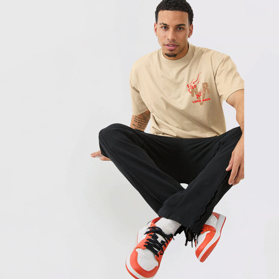 เสื้อยืดพิมพ์ลายสำหรับผู้ชายเสื้อ300gsm ระบายอากาศได้ดีทรงโอเวอร์ไซส์ออกแบบโลโก้ได้ตามต้องการ