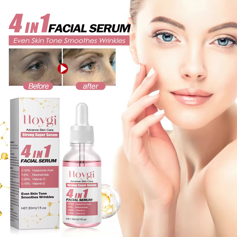 เซรั่มบำรุงผิวหน้าแบบ4 in 1พร้อมวิตามินซี5% ไนอาซินาไมด์10% วิตามินอีสำหรับช่วยให้ผิวหน้ามี30% ขาวกระจ่างใสขึ้น30มล.