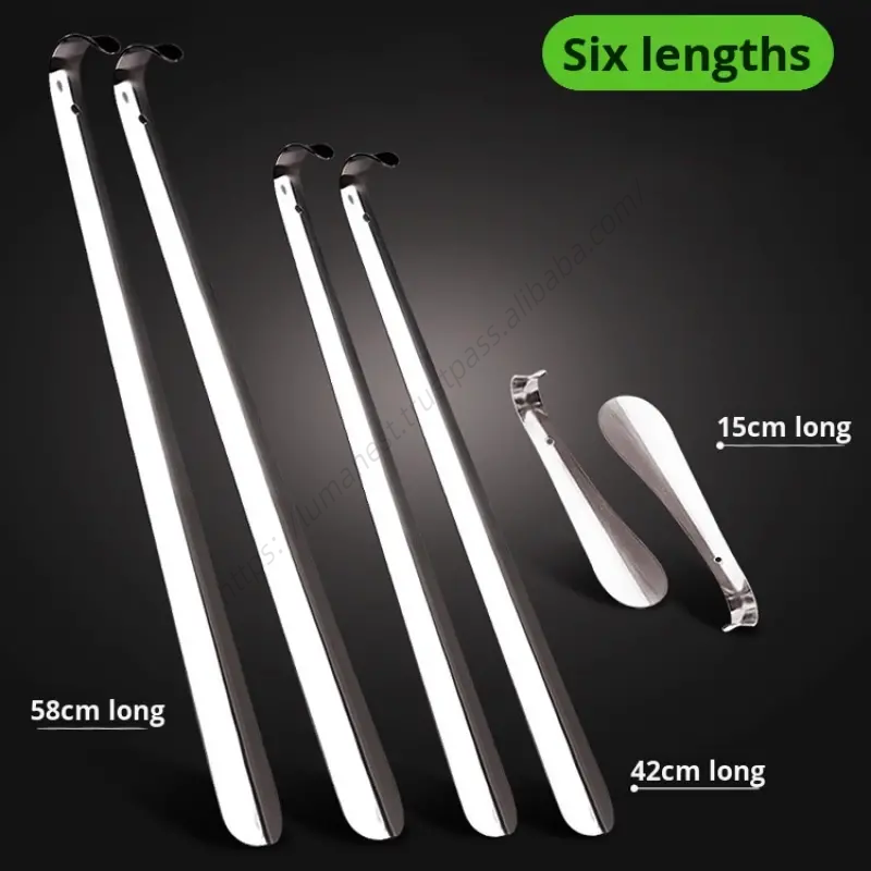 ที่โกยรองเท้าสแตนเลสขนาด 30 ซม. พร้อมด้ามจับหนังยาว อุปกรณ์ช่วยสวมรองเท้าสำหรับใช้ในบ้าน ขายส่ง