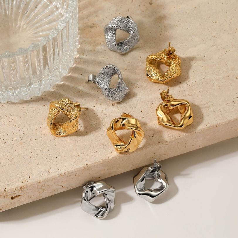 ต่างหูสตั๊ดสเตนเลสสตีล 316L ลายเรขาคณิตศักดิ์สิทธิ์ ดีไซน์ไม่สมมาตร ผิวด้านเรียบเนียน ขายส่ง