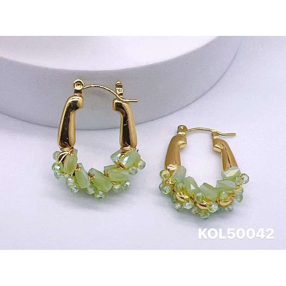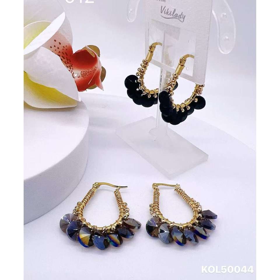 ต่างหูคริสตัลสแตนเลสสตีล 316L ชุบทอง 585 ยี่ห้อ VIKILADY ขายส่ง งานขัดเงาแบบดิบ เครื่องประดับคุณภาพพรีเมียม