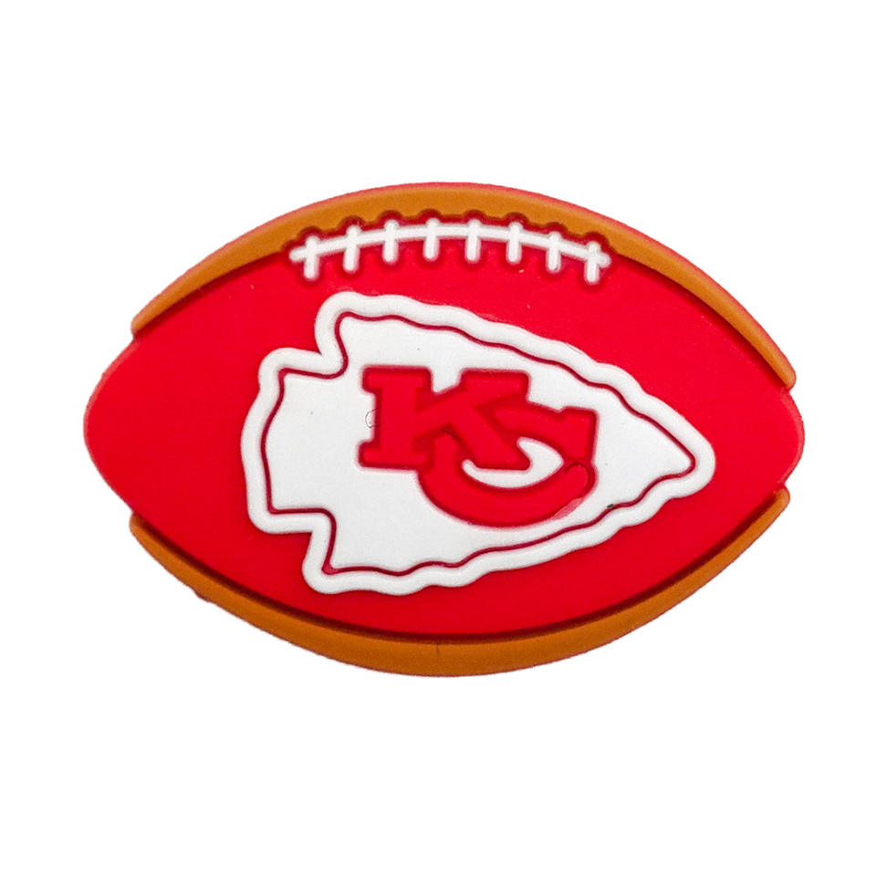 ขายส่ง 32 ทีม NFL รองเท้าอเมริกันฟุตบอล หัวเข็มขัดรองเท้าลายดอกไม้ ทำจากกาวนิ่ม PVC อุปกรณ์ตกแต่งรองเท้า หัวเข็มขัดตกแต่ง ชาร์มรองเท้า NFL