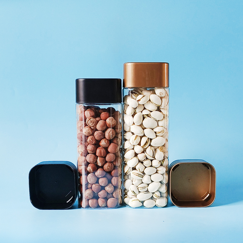 ฝาเกลียวพลาสติกใสขนาด330มล. 430มล. 580มล. 660มล. สำหรับใส่คุกกี้ลูกอมถั่วน้ำผึ้งและน้ำตาลอาหาร
