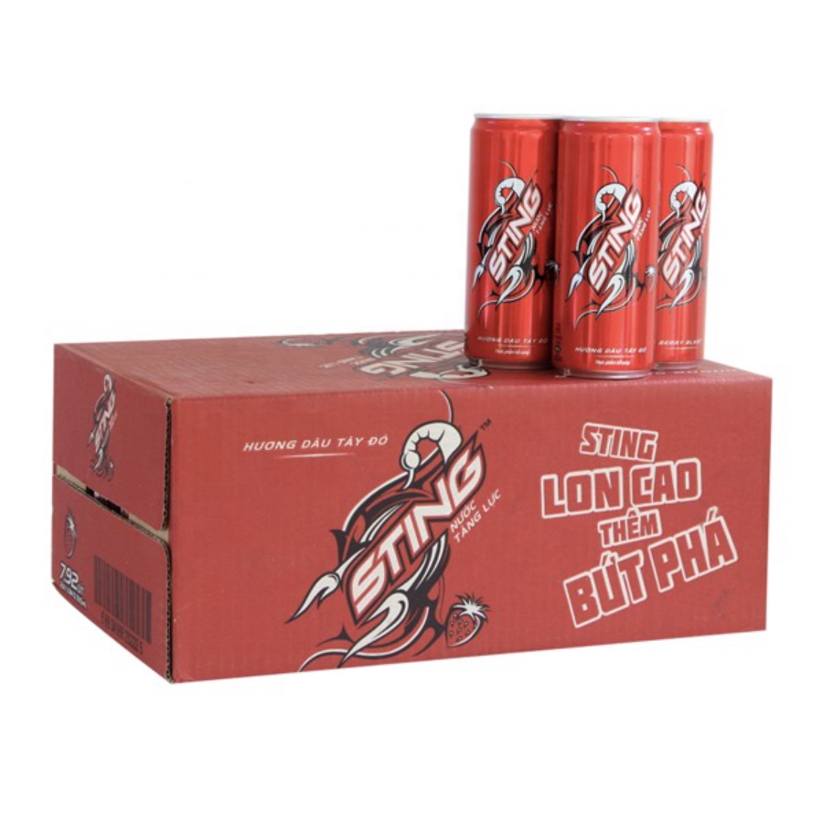 เครื่องดื่มชูกำลังรสสตรอว์เบอร์รี สติง ขนาด 330 มล. รสหวาน เครื่องดื่มฤดูร้อน บรรจุ 24 กระป๋อง ขายส่ง