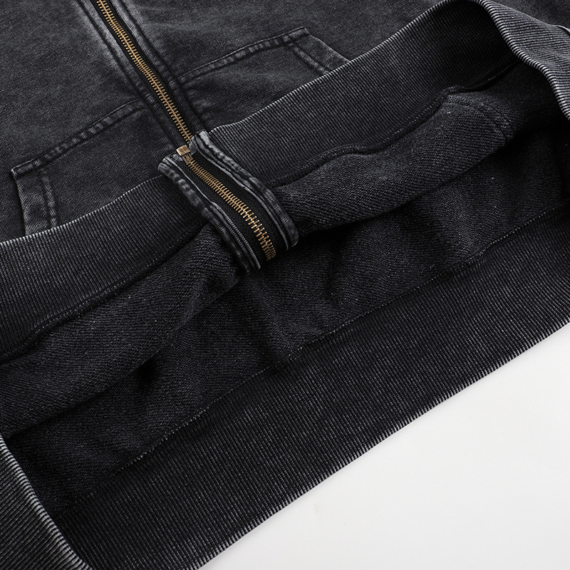 เสื้อฮู้ดดี้ซิปเต็มตัวแบบครอปพิมพ์ลายดิจิตอล 360gsm สำหรับผู้ชาย สไตล์วินเทจ ล้างสีแล้ว ขายส่ง