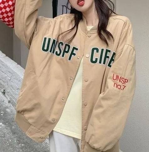 แจ็คเก็ตกันลมสำหรับผู้หญิงแจ็กเก็ตเลตเตอร์เสื้อคลุมกันลมสำหรับผู้หญิงขายส่งโลโก้3D พิมพ์ลาย