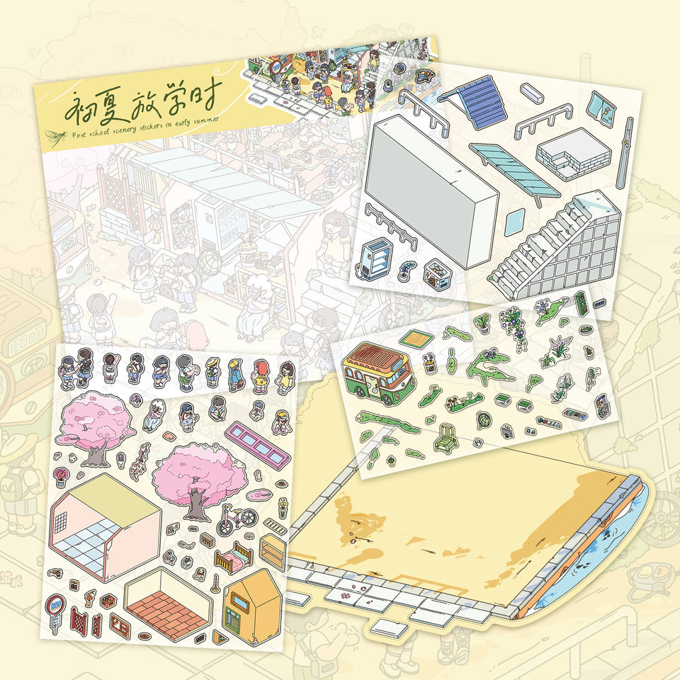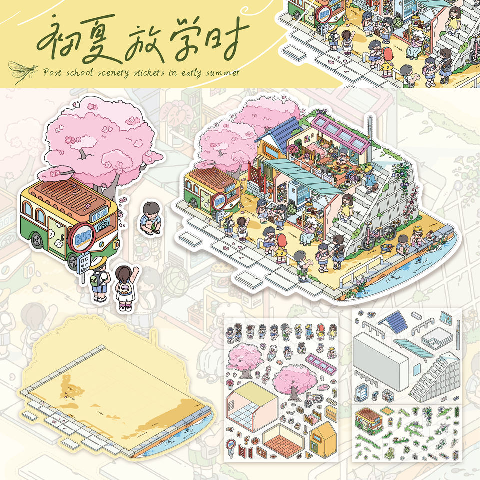 สติกเกอร์ 3 มิติ ลายวิวชีวิตนักเรียน ขายส่ง - สติกเกอร์ตกแต่งไดโอรามา สำหรับสมุดแพลนเนอร์ แผ่นสติกเกอร์แบบเลเยอร์ปรับแต่งได้