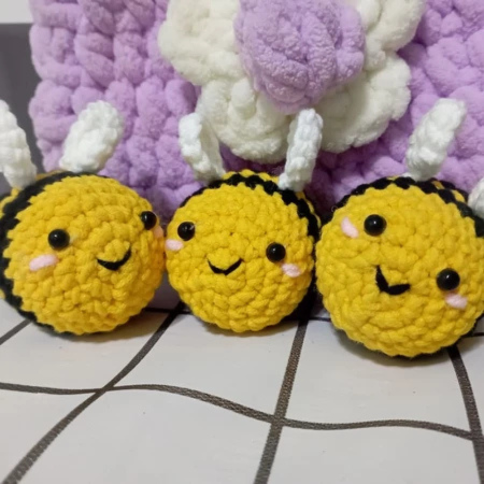 พวงกุญแจแฮนด์เมดสำหรับผึ้งโครเชต์3D สีเหลืองพวงกุญแจของเล่นรูปสัตว์เวียดนามแบบโซ่คล้องพวงกุญแจแฮนด์เมด