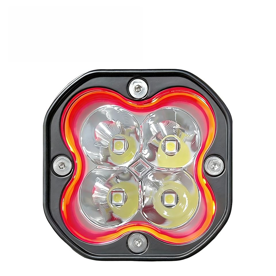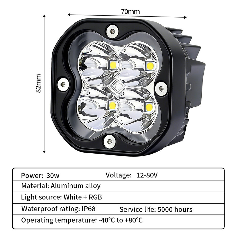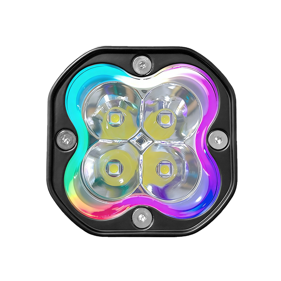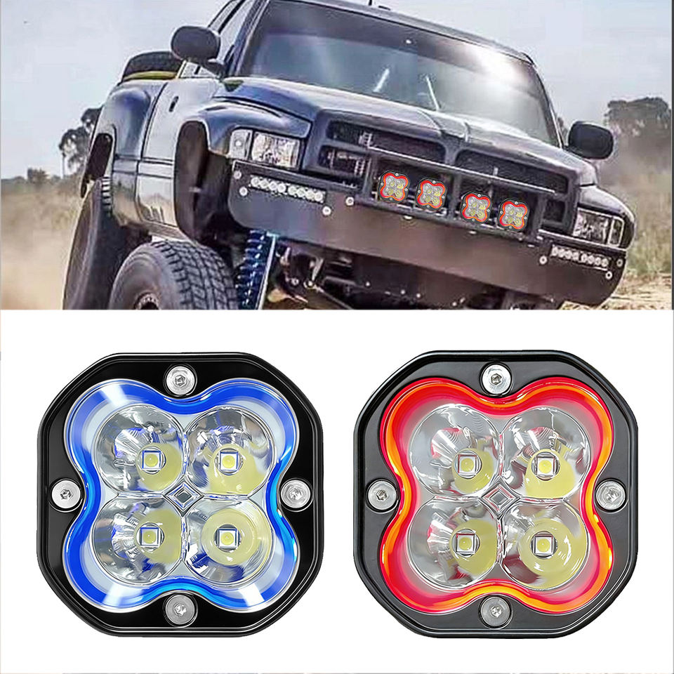 ไฟสปอร์ตไลท์มอเตอร์ไซค์ RGB ทรงสี่เหลี่ยม 3 นิ้ว แบบขายส่ง ไฟ LED กันน้ำ ไฟตัดหมอก ไฟขับขี่ 4 เลนส์ สำหรับรถออฟโรด เหมาะสำหรับรถจี๊ป SUV