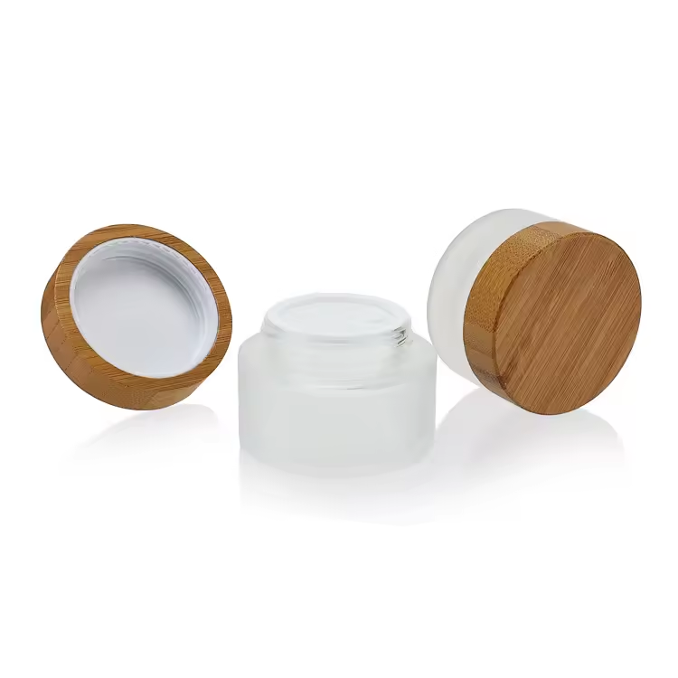 ขวดแก้วฝ้าขนาด 3 ออนซ์/5 กรัม/10 กรัม/50 กรัม พร้อมฝาไม้ไผ่แท้ สำหรับบรรจุครีม ขายส่ง