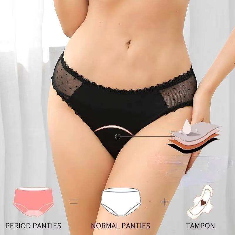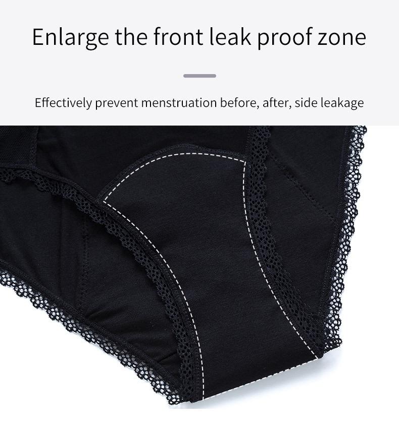 กางเกงในประจำเดือนแบบซักได้ ระบายอากาศได้ดี ป้องกันการรั่วซึม เซ็กซี่ แต่งลูกไม้ 4 ชั้น เอวต่ำ สำหรับผู้หญิง ไซส์ใหญ่พิเศษ 4XL ผลิตจากใยไผ่ ขายส่ง