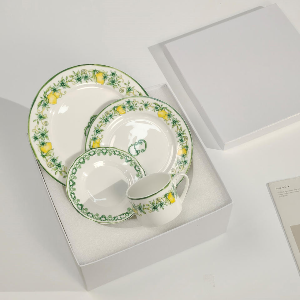 ชุดจานกระเบื้องเคลือบทองหรูหราสไตล์ยุโรป 4 ชิ้น ขายส่ง เป็นมิตรกับสิ่งแวดล้อม