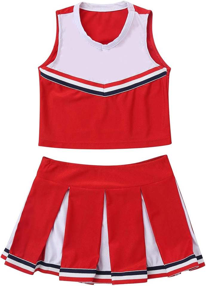 ชุดเชียร์ลีดเดอร์เด็กผู้หญิง 4 ชิ้น ขายส่ง ชุดยูนิฟอร์มเชียร์พร้อมพู่สำหรับงานปาร์ตี้ฮาโลวีนและการแสดงในโรงเรียน