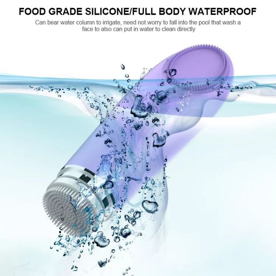 เครื่องทำความสะอาดผิวหน้า 4 in 1 แบบกันน้ำ พร้อมโลโก้ แปรงทำความสะอาดรูขุมขนซิลิโคนนุ่ม แปรงทำความสะอาดผิวหน้าไฟฟ้า ขายส่ง