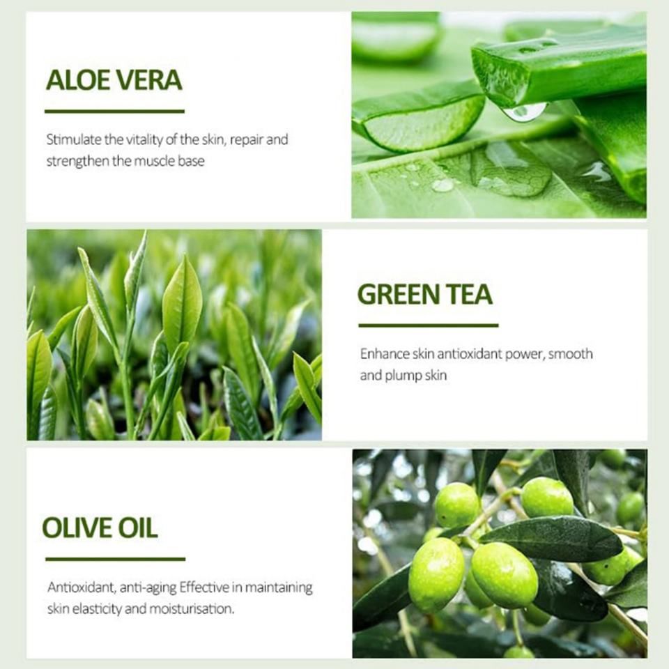 ชาเขียว,ว่านหางจระเข้,เคโอลิน,น้ำมันมะกอก