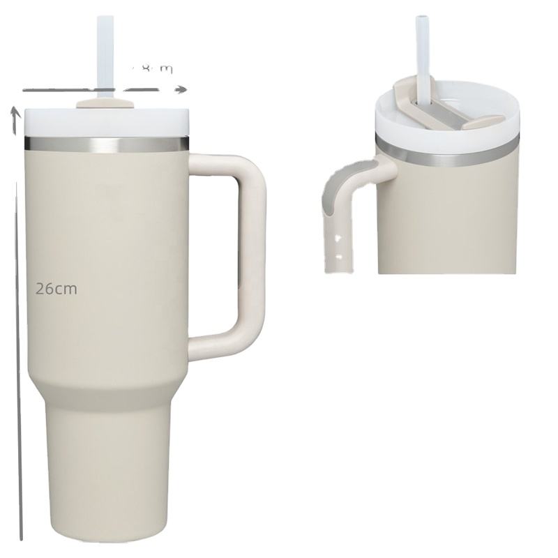 แก้วน้ำเก็บความเย็นแบบพกพาขนาด 40 ออนซ์ รุ่น H2.0 ผนังสองชั้นสุญญากาศ สแตนเลส พร้อมหูจับและหลอดดูด รับสกรีนโลโก้ฟรี