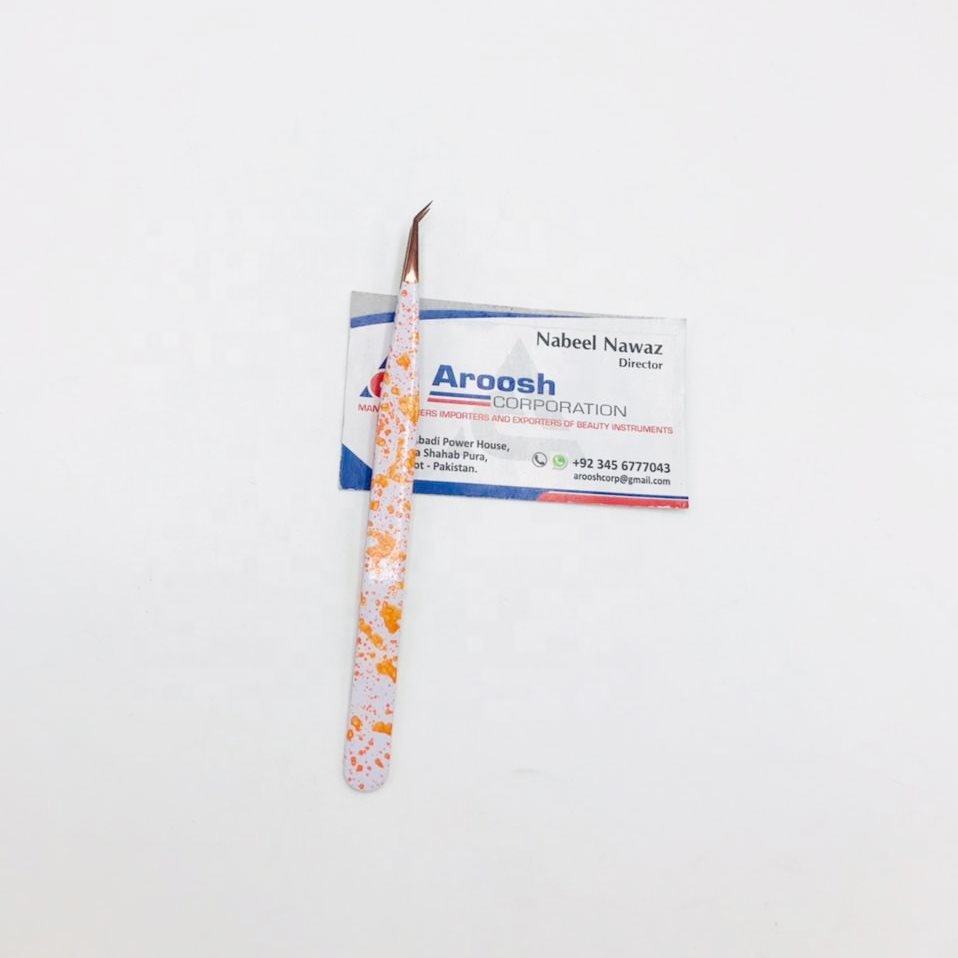 Aroosh Corp อุปกรณ์ต่อขนตาสแตนเลสสองชั้น45องศากุหลาบทอง