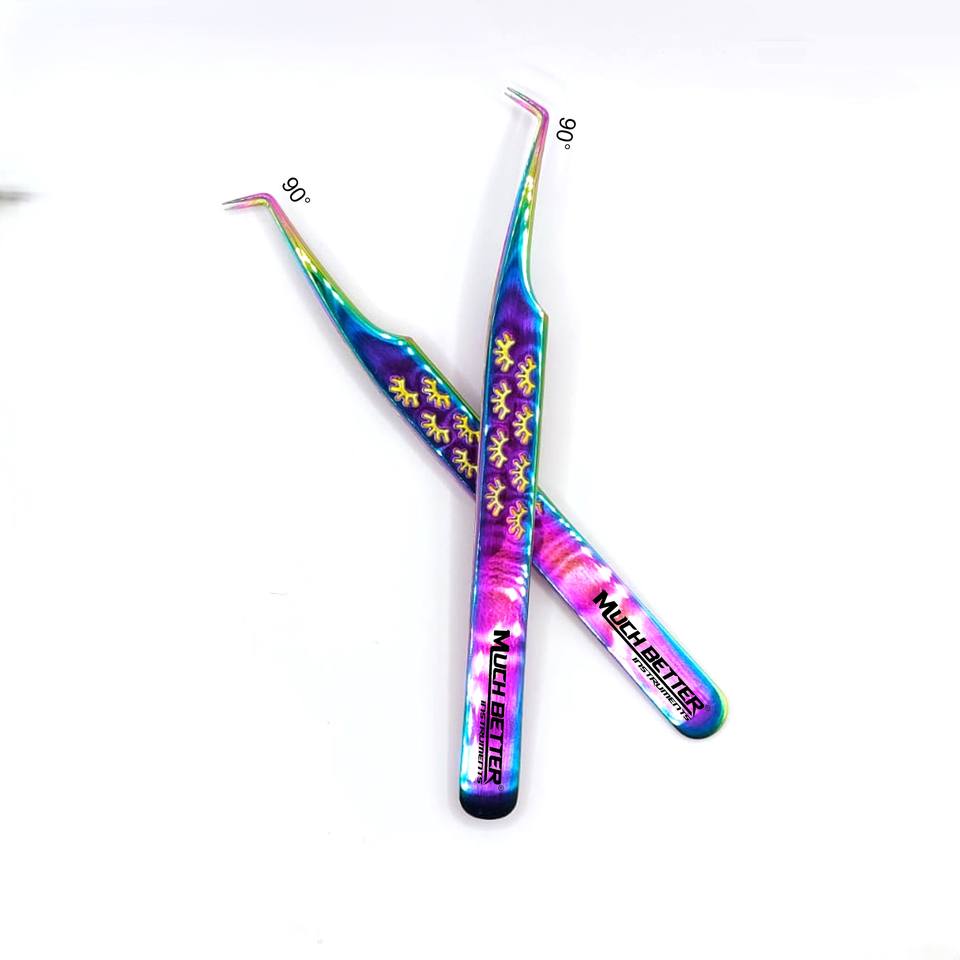 คีมหนีบขนตาสำหรับบูต45องศาแบบบางปลายไฟเบอร์เรียบมีหลายสีรุ้งสแตนเลสหลายสีให้เลือก